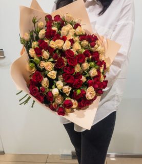 Эффектный букет из кустовой розы.