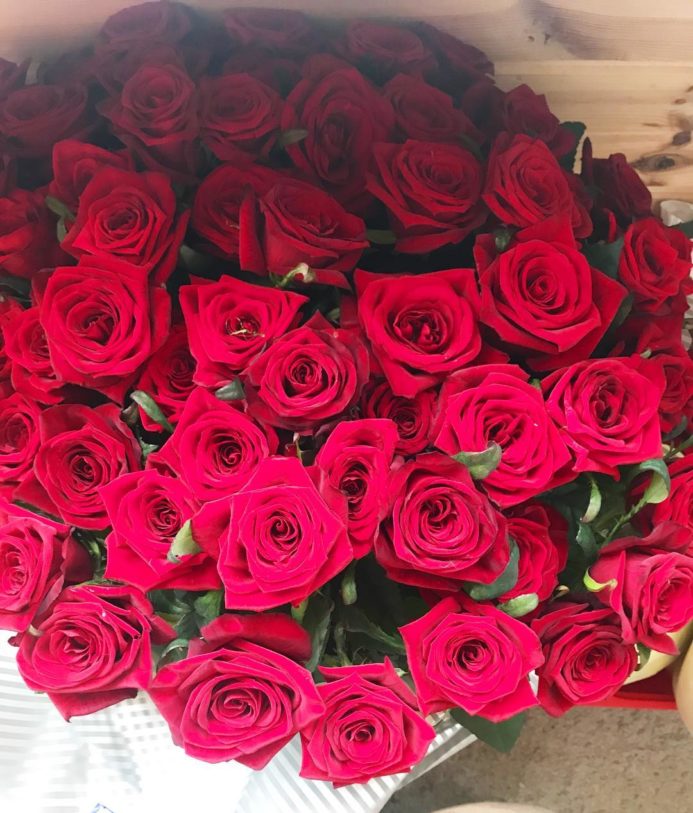 65 красных алых роз на ножке 80 см ?? — это получился шикарный огромный букет