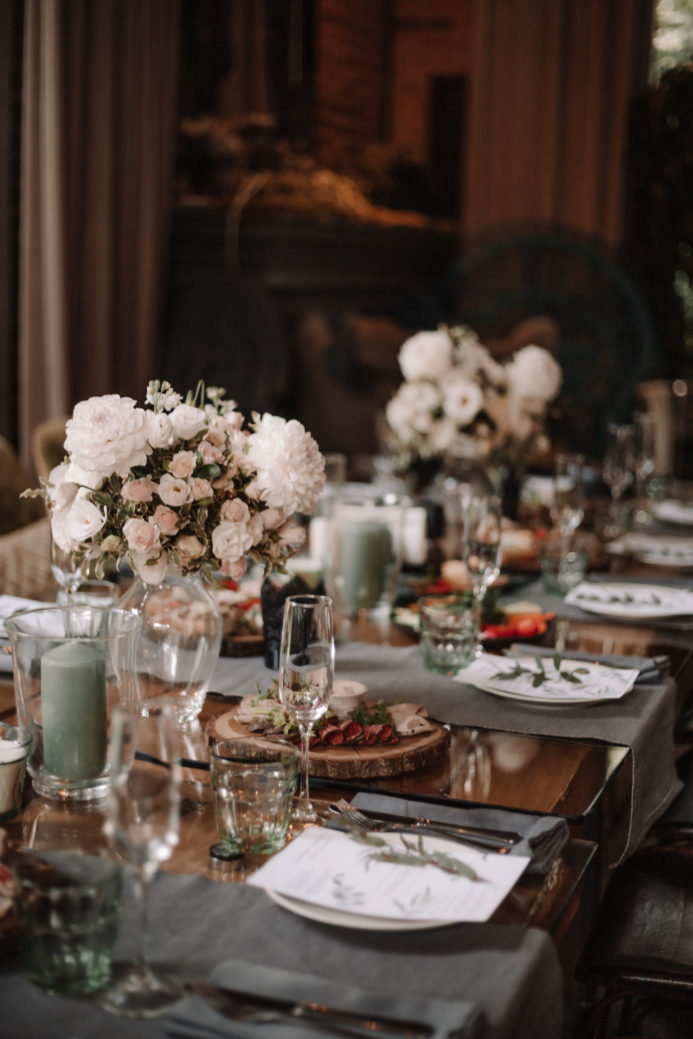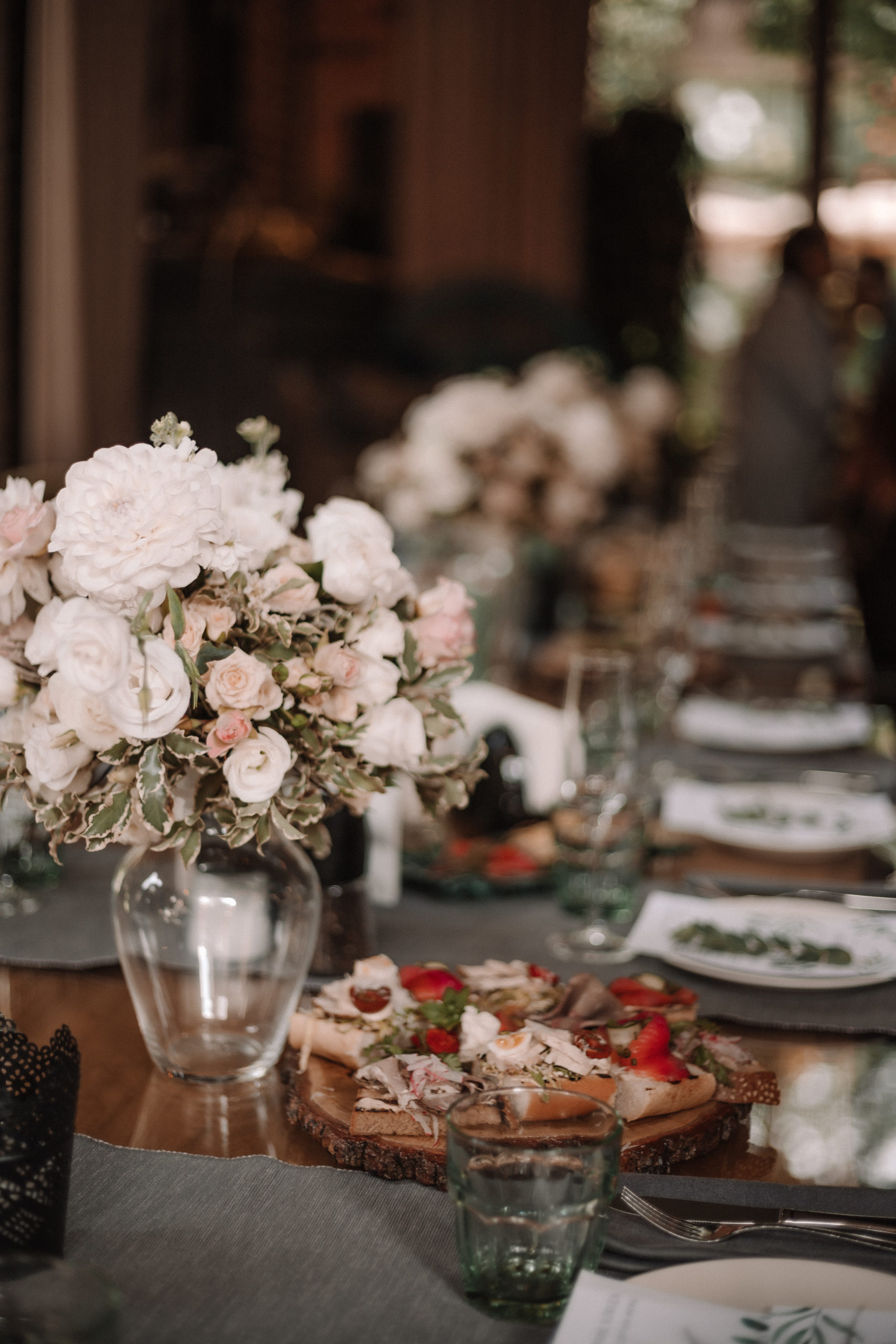 Белая эустома, Бруния, Георгин, Кустовая роза Яна, Маттиола, Роза