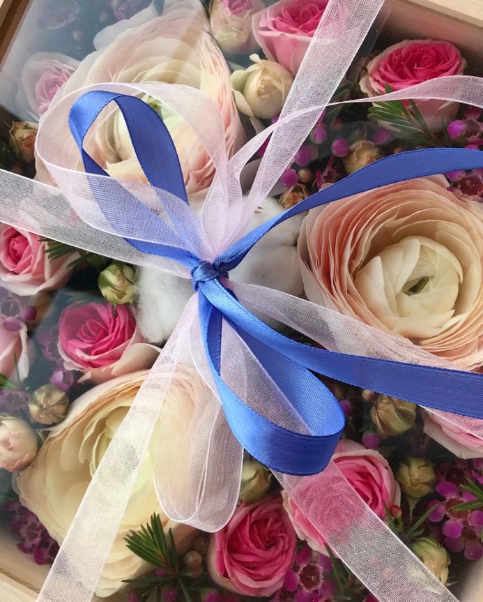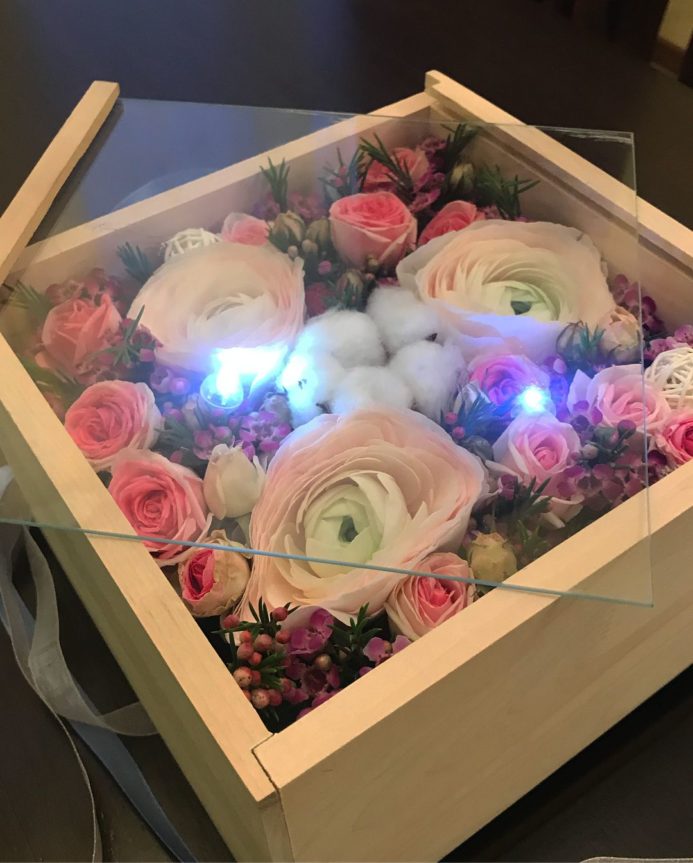 Цветы в деревянной коробке со стеклянной крышкой?!