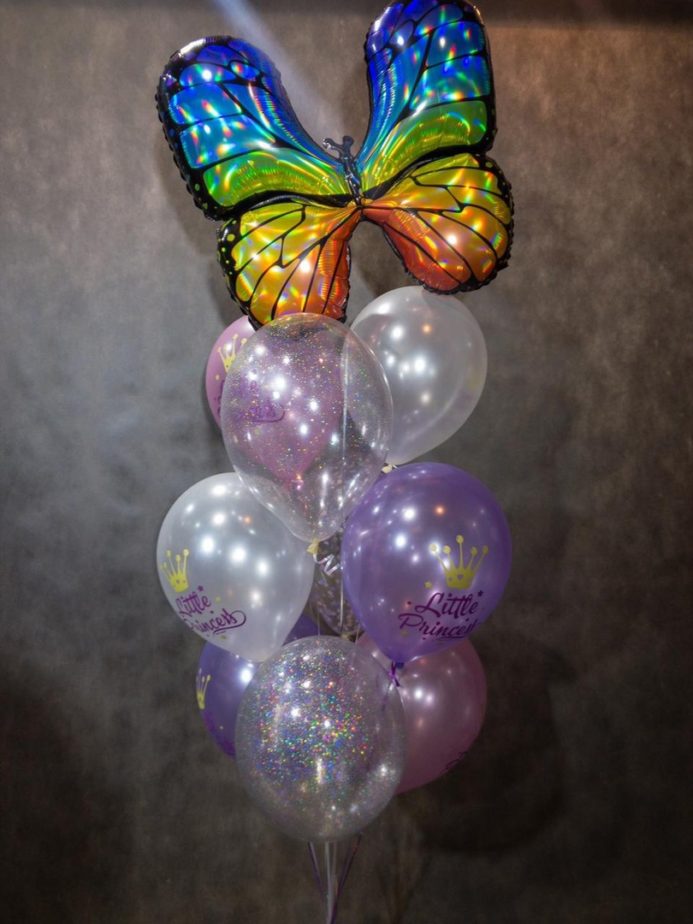 Хотите сделать сюрприз и порадовать вашего ребёнка? Закажите вот такую искрящуюся композицию из прозрачных шаров с блестящими конфетти и переливающейся бабочкой.