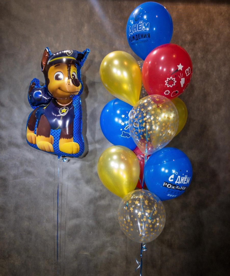Отличный фонтан из воздушных шаров для ребёнка. Ведь Гончик из Щенячьего патруля — один из самых любимых персонажей всех детей! Яркая композиция это не просто летучие шарики, но и отличное настроение, заряд положительных эмоций и хорошего настроения.