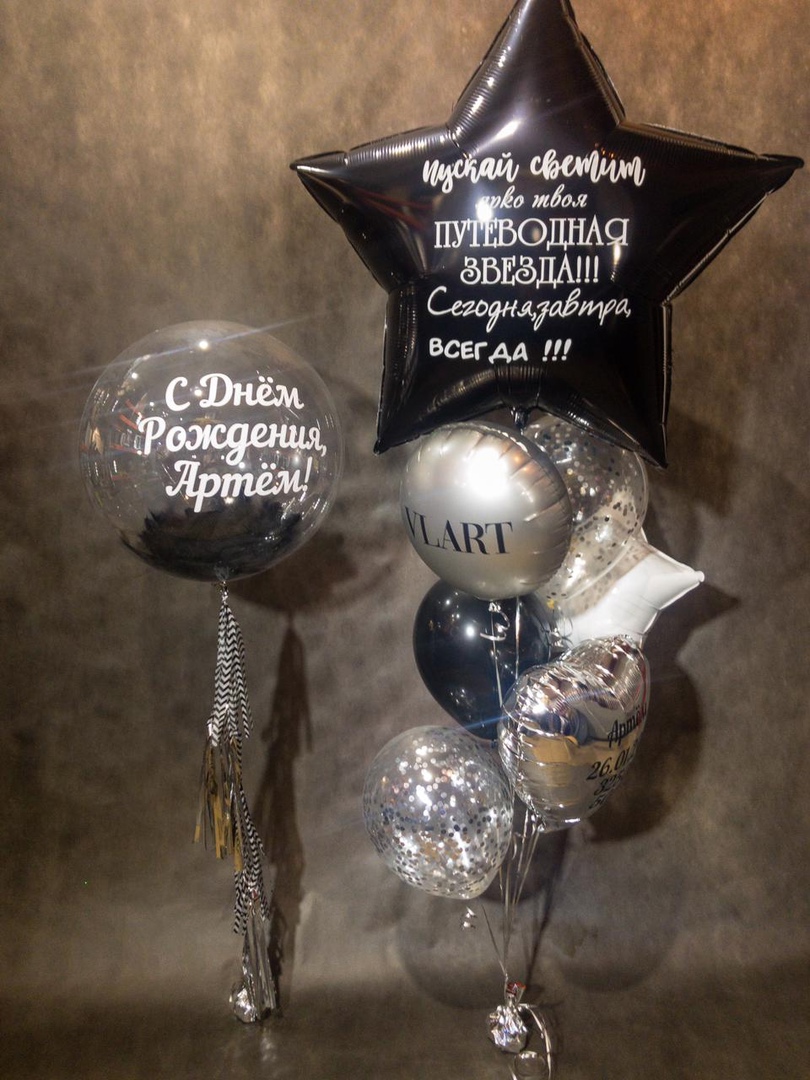 Вот такую стильную композицию мы создали для Дня рождения Артёма.