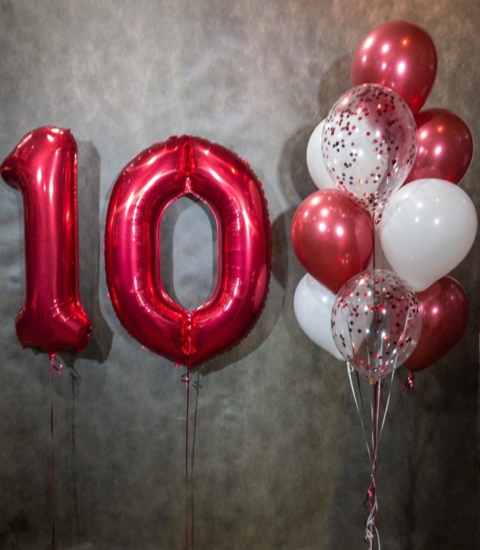Стильный фонтан из воздушных шаров на День рождения. Не имеет гендерных и возрастных особенностей, при необходимости вы можете заказать другие цифры и выбрать свою цветовую гамму.