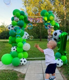 Фотозона из воздушных шаров идеально вписывается в любой интерьер и не только. Как видите наши заказчики разместили её на улице и она смотрится гармонично и эффектно.