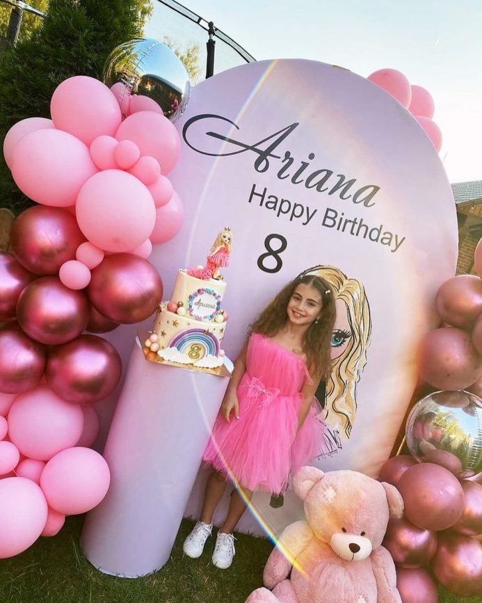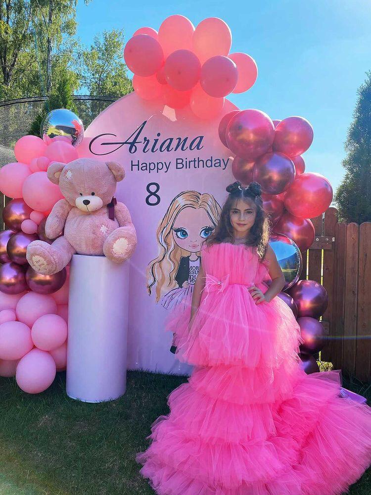 Закажите фотозону из воздушных шаров. Наша юная героиня любит розовый цвет, а потому фотозона выдержана в этой гамме, но при желании вы можете выбрать другие цвета и из сочетания. Также как и печать на баннере может быть любой, что делает фотозону универсальной.