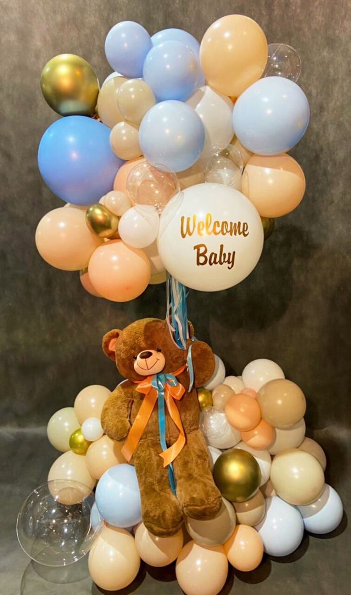 А если вы хотите более объёмную композицию, то можете заказать оригинальный фонтан из шаров на выписку.