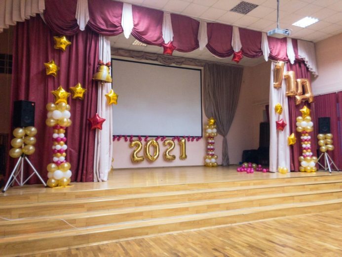 А воздушные шары — символ детства, лёгкости, надежд. Именно поэтому оформление сцены воздушными шарами на выпускной и последний звонок так популярны.