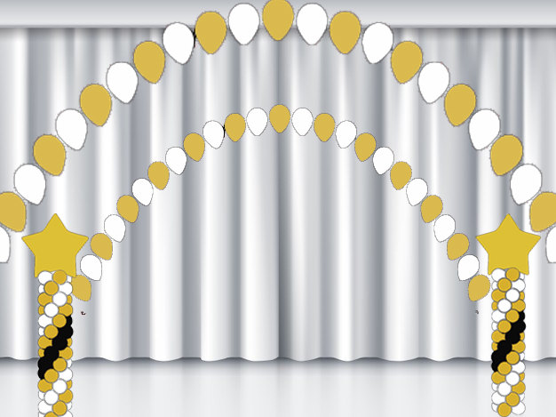 Эффектная арка из воздушных шаров для оформления сцены на выпускной и высокие колонны.